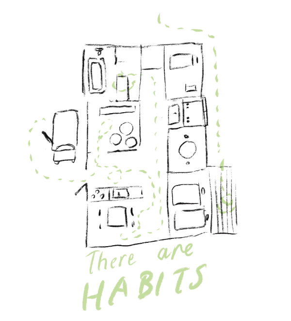 過ごしやすい動線は人それぞれ。その癖に合わせてタイトな部分とルーズな部分をつくっていく、そんな「余り」の部分をあえて設けることで、その人らしく、心地よい空間をデザインしていきます。