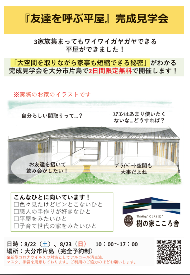 ※予約を締め切りました【8/22、8/23】完成見学会を大分市片島で開催します!