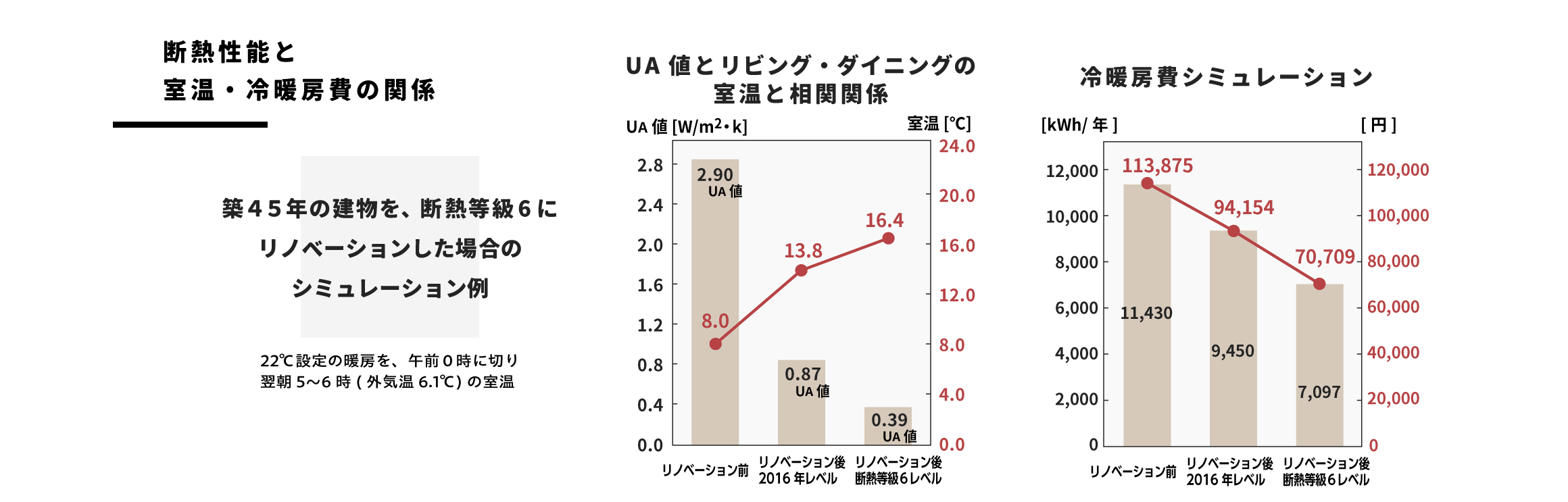 断熱リフォームにより、エネルギー効率が向上し電力消費量を低減、毎月の光熱費を削減することができます。家庭の電化製品の中で最もエネルギーを必要とするのがエアコン。実は冷暖房の電力消費量は、エアコンの性能だけでなく、設置する部屋(住宅)の『断熱性能』も大きく影響しています。断熱性能が向上することで、冷暖房効率が上がり、光熱費の削減に繋がります。